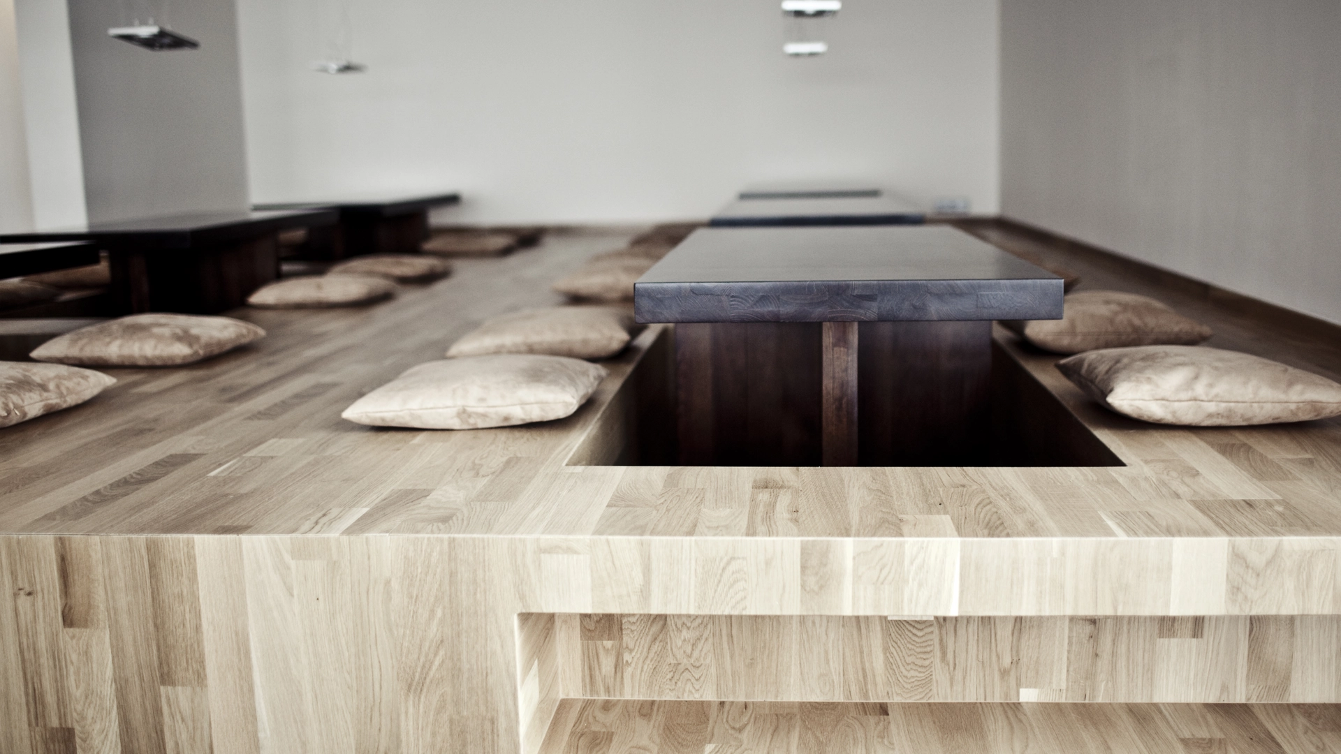 Oprócz tradycyjnych stołów, zawiera część urządzoną w stylu japońskim.