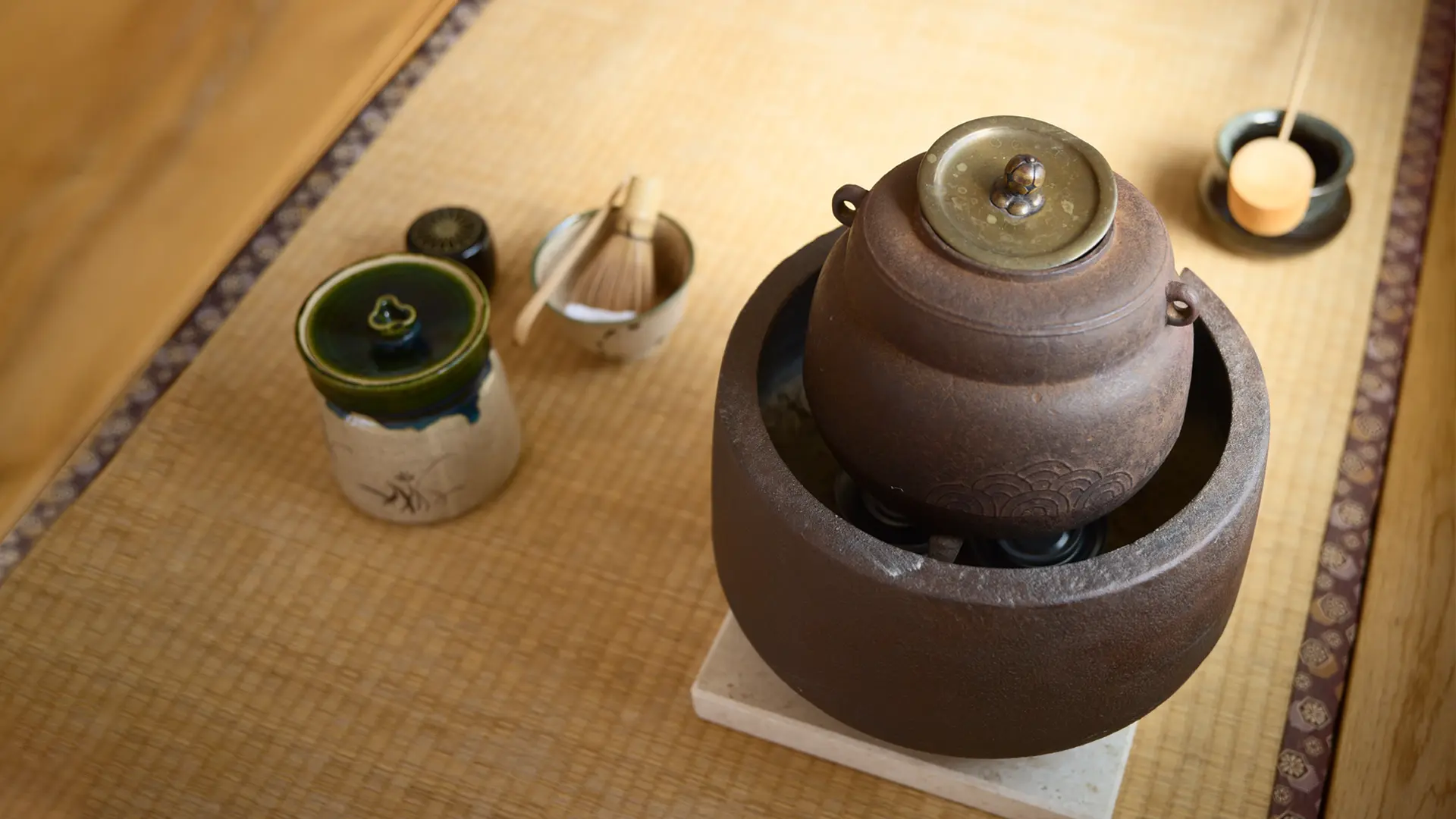 Herbaciarnia znajduje się w pawilonie położonym nad brzegiem zbiornika wodnego, w otoczeniu drzew i krzewów oraz elementów kamiennych ogrodu japońskiego.